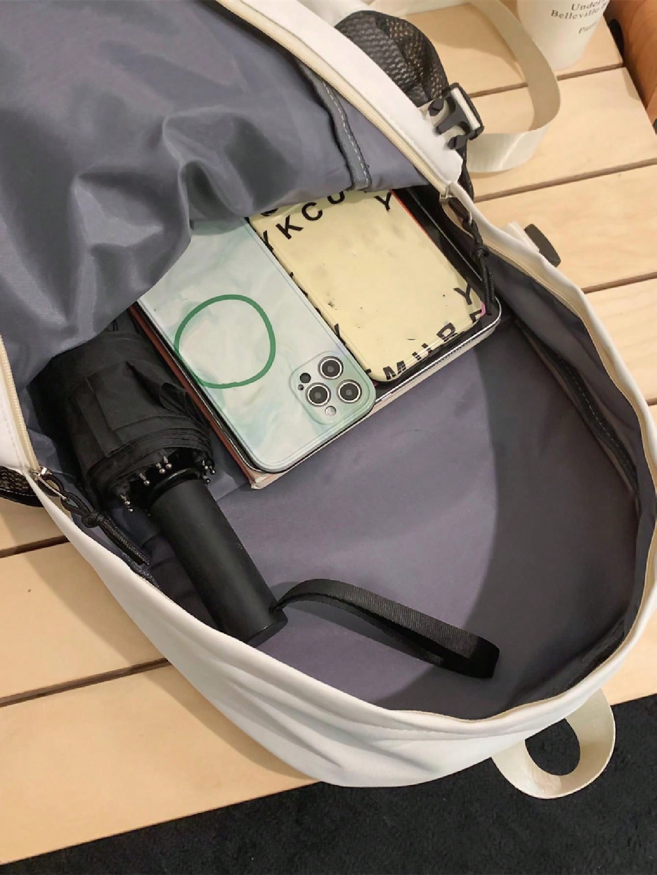 1pc Nylon Alphabet Printed Backpack For College Students, Fashionable Casual Travel Bag With Zipper Closure For Daily Use