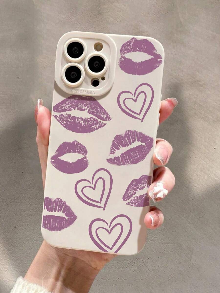 1pc Oil Spray Silicone White Camera Protection Tpu Lips & Eyes Design Phone Case Compatible With Iphone
