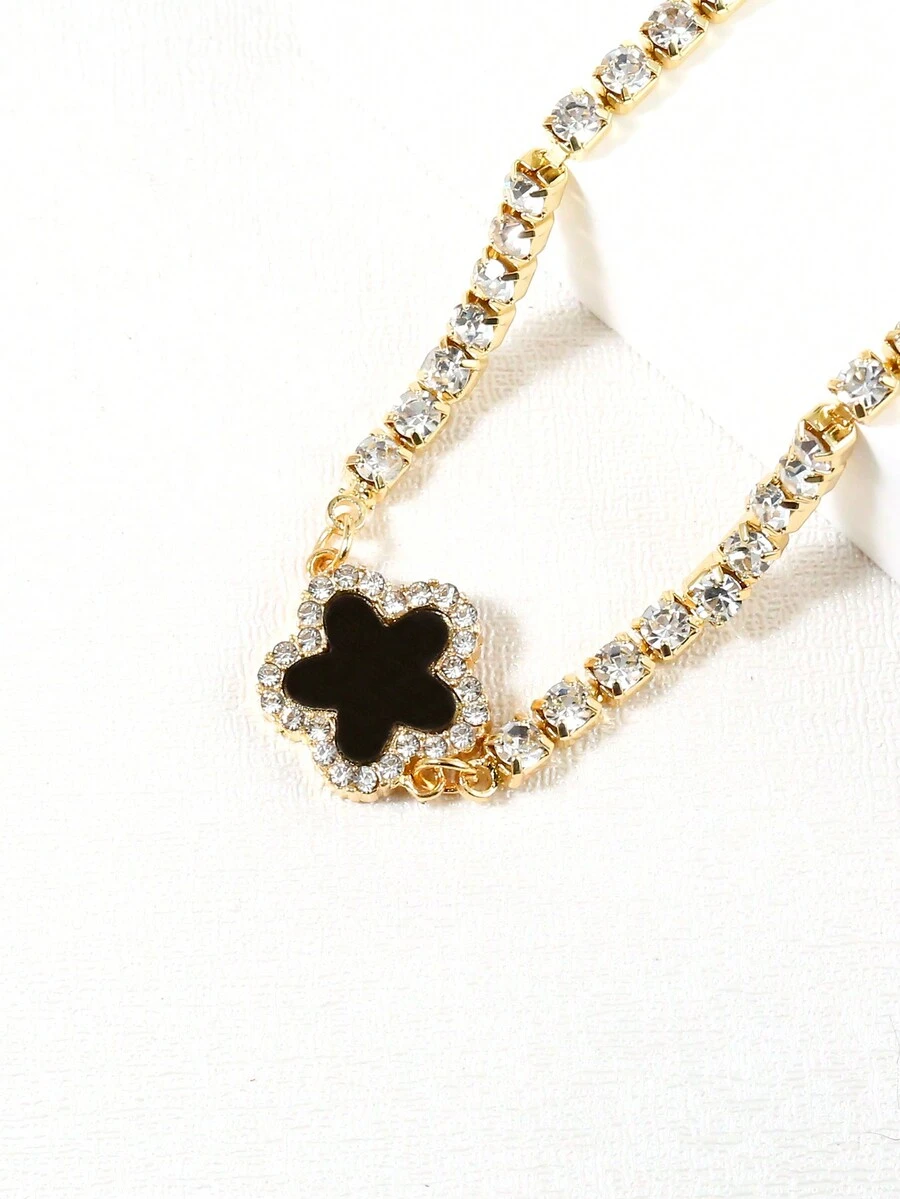 1pc One-Sided Circle Diamond & Flower Design Women'S Fashionable & Creative Trendy & Retro & High-Grade Necklace
