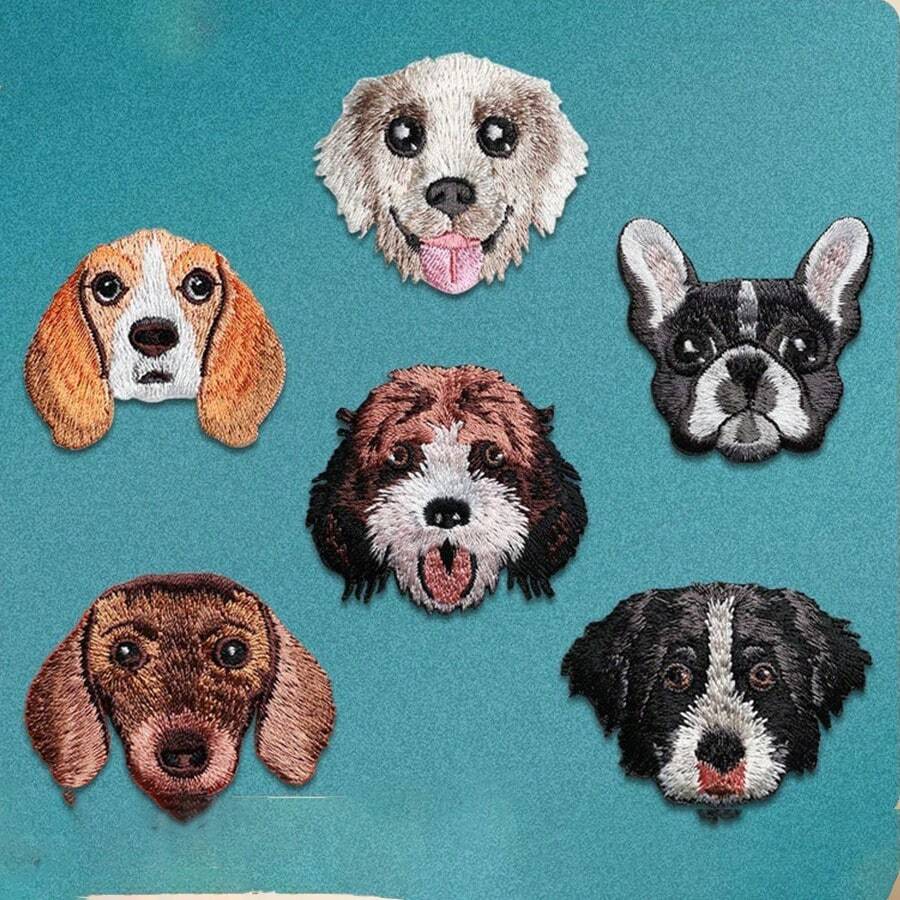 1pc Or 6pcs/Set Animal Dog Shaped Embroidered Patch, Diy Decoration For Clothes