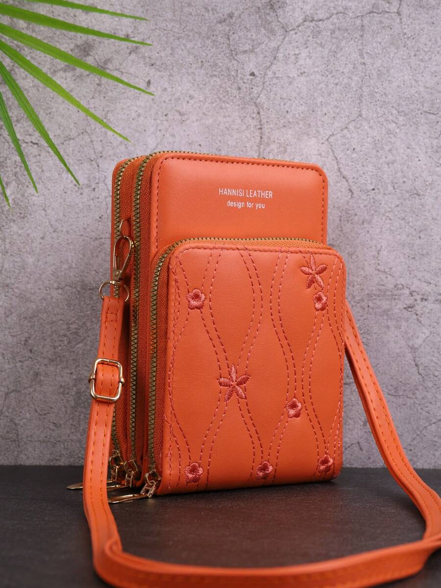 1pc Orange Fashionable Versatile Mini Embroidered Shoulder Bag, Crossbody Bag For Women With Large Capacity Zipper Pockets For Phone, Coins, Etc.