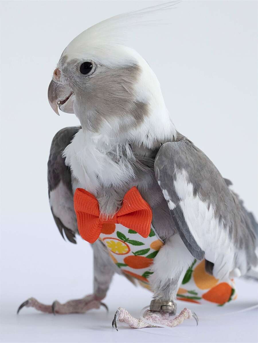 1pc Orange Print Bow Decor Pet Sanitary Pants, Parrot Diaper With Bowtie Cute Colorful Fruit Floral Cockatiel Pigeons