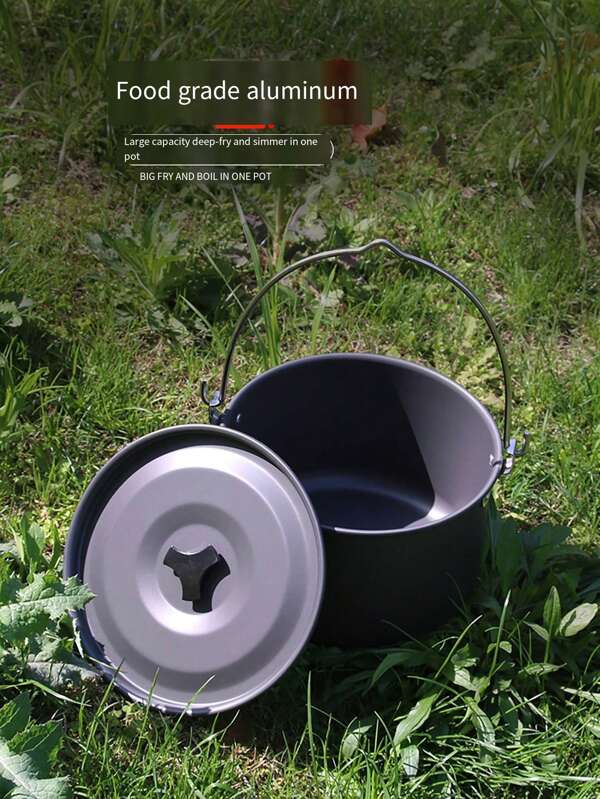 1pc Outdoor Camping Pot Set, Aluminum Alloy Portable Cookware, With Hanging & Sitting Pot, Suitable For 5-8 Person Camping Trip Or Outdoor Picnic