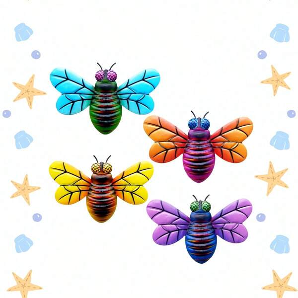 1pc Outdoor Decoration Bee Shaped Metal Ornament Pendant, 4 Colors Available, Can Hang On Wall Or Garden As Gift