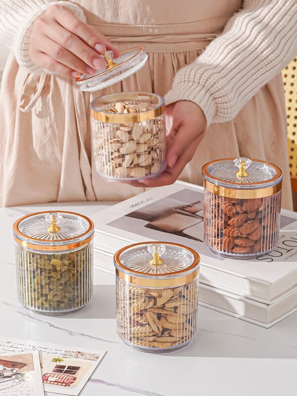 1pc PMMA Food Storage Box, Nordic Diamond Decor Round Clear Food Storage Jar For Table