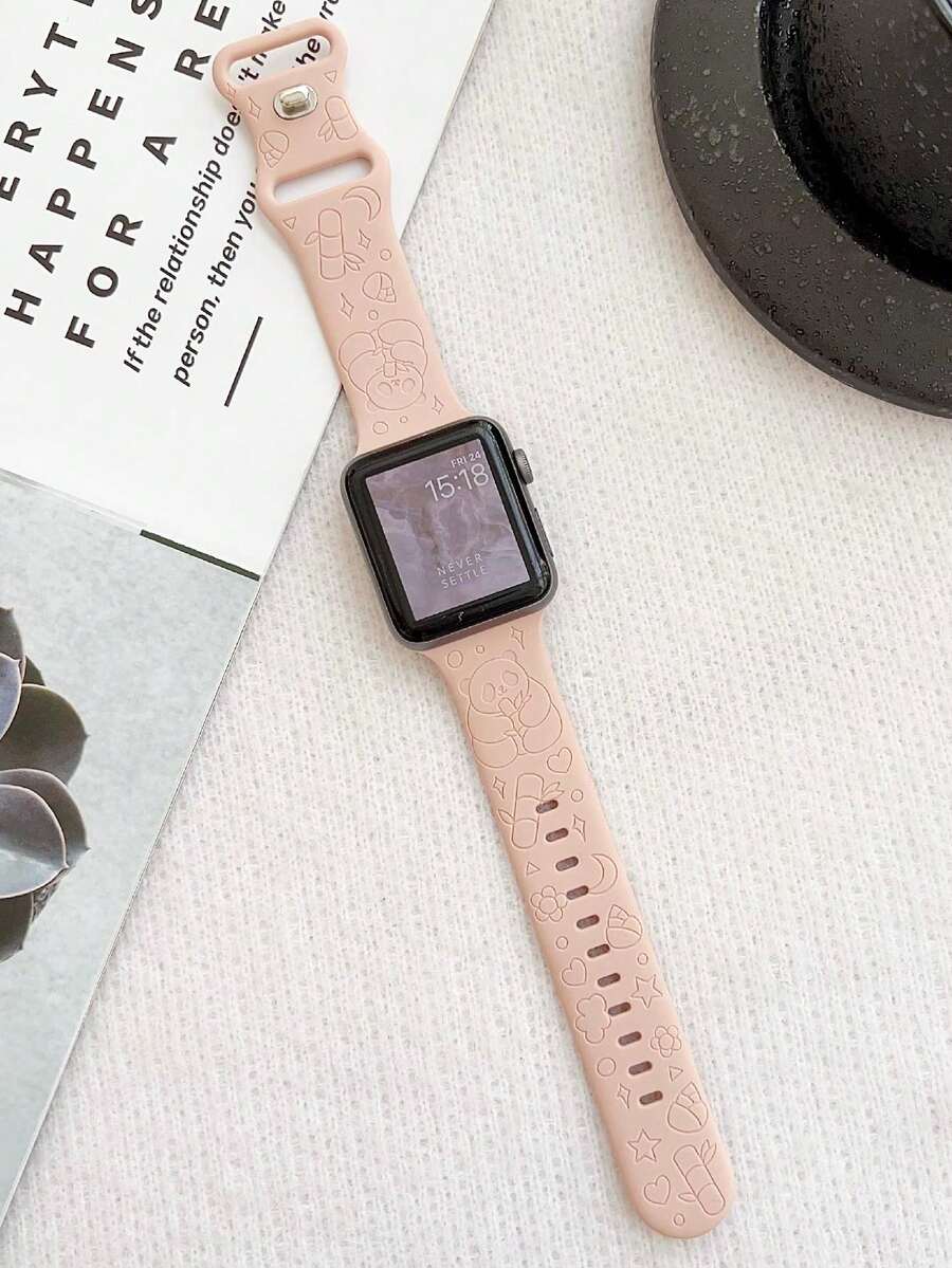 1pc Panda Cartoon Pattern Luminous Silicone Apple Watch Band, Compatible With Apple Watch Ultra/Se/8/7/6/5/4/3/2/1, 38/40/41/42/44/45/49mm