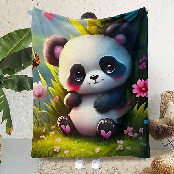 1pc Panda Pattern Flannel Blanket Abstract Soft Warm Sofa, Air Conditioning, Bed Blanket Suitable For All Seasons