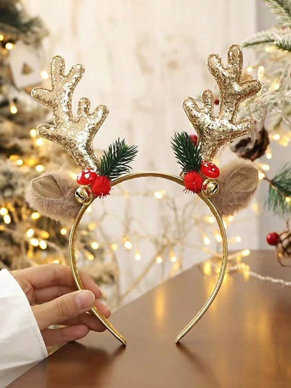 1pc Party Headband With Antlers & Bells Decoration, European And American Style