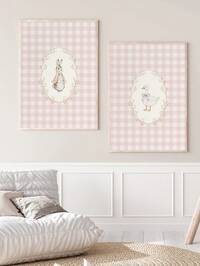 1/2 Canvas Wall Art, Framed Rabbit And Silly Goose Theme Wall Decor For Kids Room, Blushing Pink Plaid Pattern, Farmhouse Animal Print, Vintage Country Rabbit Illustration, Suitable For Children's Room, Nursery, Playroom, Boy/Girl Room, Waterproof, Party Decor Gift 1pc Touch Sensor Night Light, Warm White & Cool White, 3 Color Adjustable, Wall Lamp, Suitable For Nursery, Hallway, Bedroom, Bathroom, Living Room, Wardrobe, Compact Design, Easy Installation, USB Rechargeable, Ideal For Baby Christening, Home Decor And Gifts #2 Bestseller