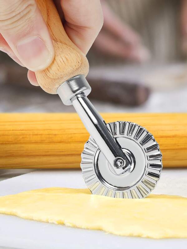 1pc Pastry Wheel Cutter With Wooden Handle For Dough Cutting & Baking In Kitchen
