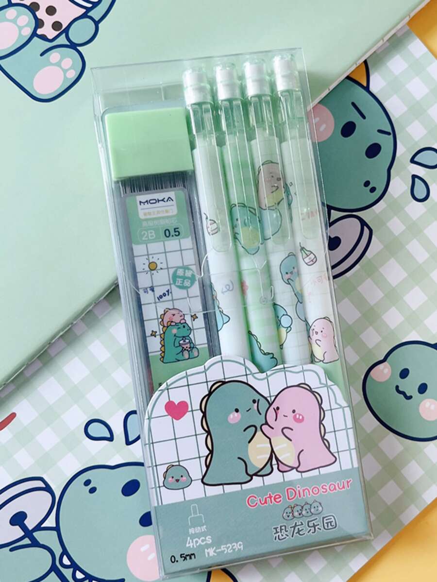 1pc Peach Cartoon Automatic Pencil Set With High Appearance Value For Primary School Students, 0.5mm Lead Refills Included