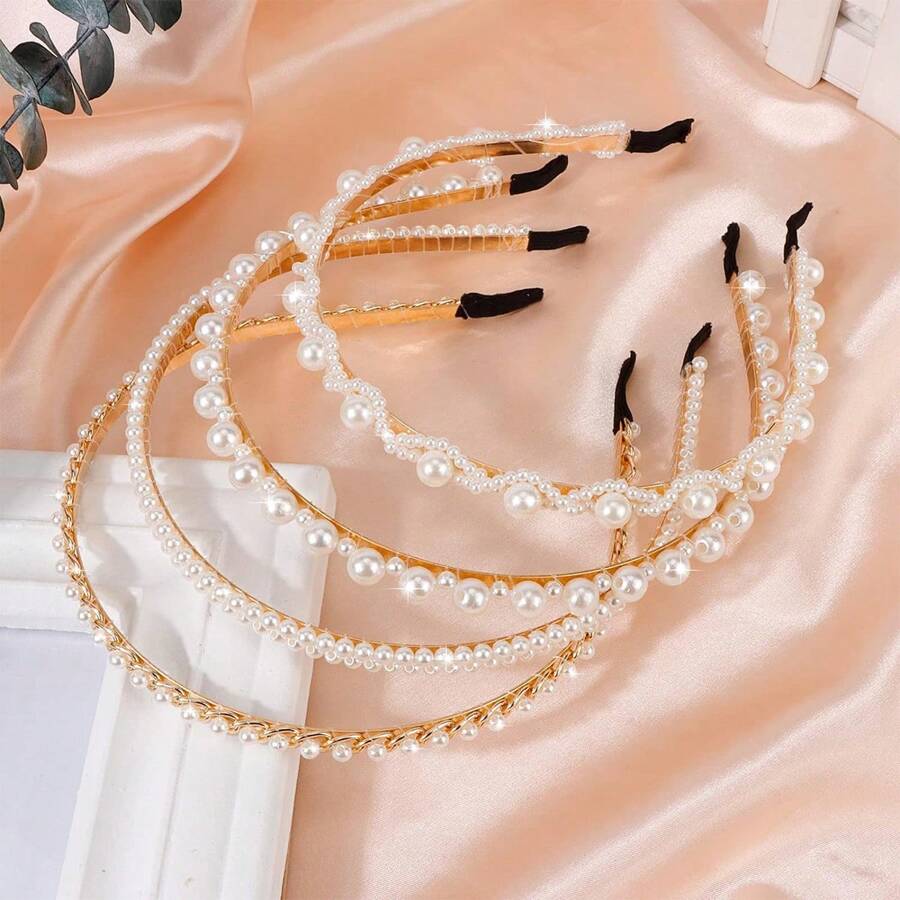 1pc Pearl & Rhinestone Decor Simple Gold-Tone Hair Hoop, All Match Hair Clip For Women's Korean Princess Style Hair Accessory