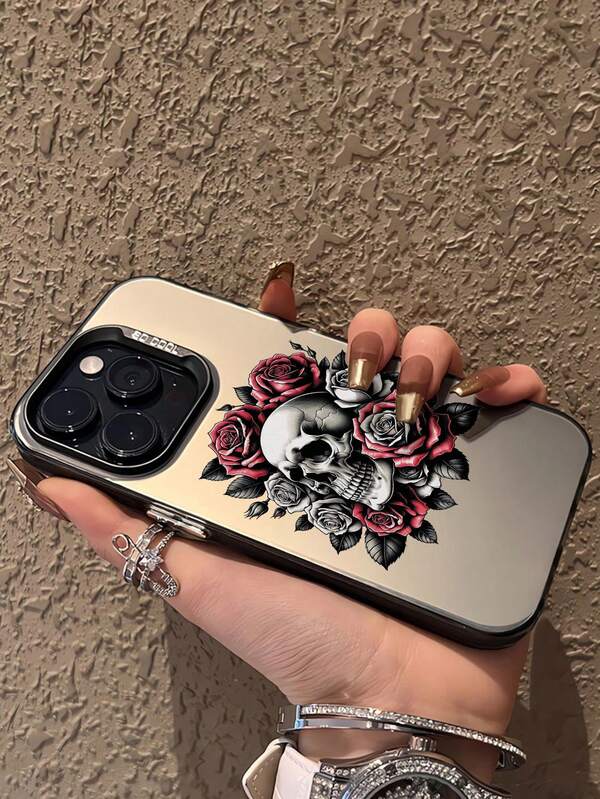 1pc Personality Artistic Skull & Rose Anti-Fall Phone Case Compatible With Iphone 11 12 13 14 11 Pro Max 12 Pro Max 13 Pro Max 14 Pro Max Xr 15 15 Pro 15 Pro Max