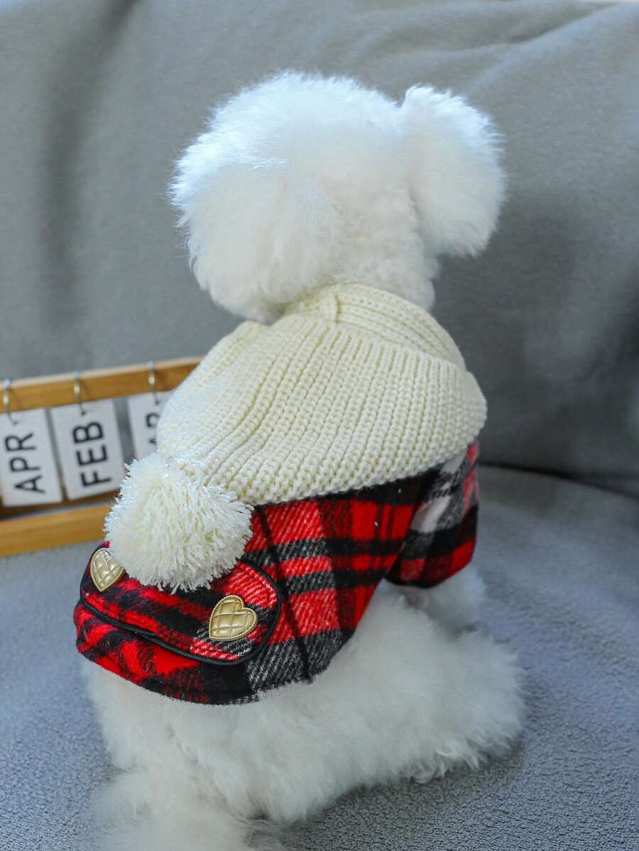 1pc Pet Clothes For Dogs And Cats, Winter Warm Fleece Hoodie With Chenille Grids