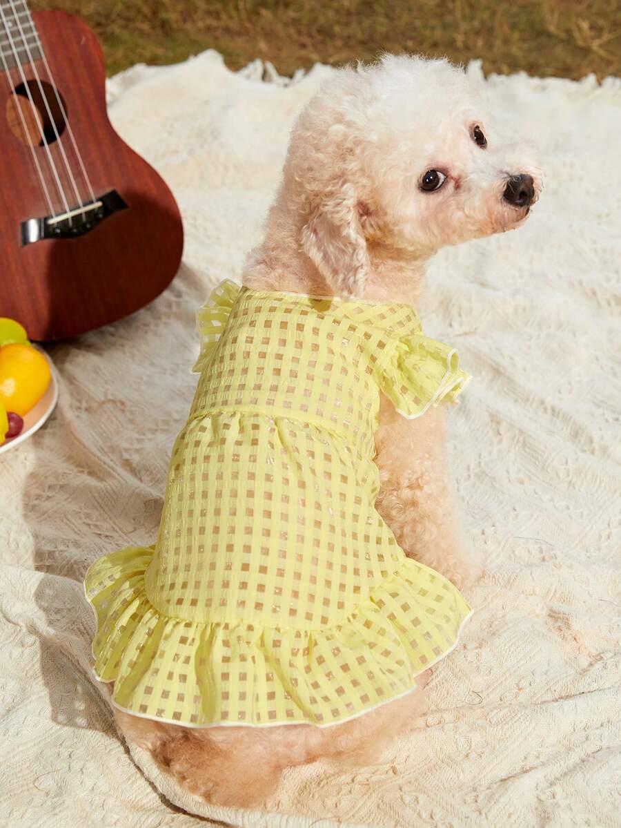 PETSIN 1pc Pet Skirt, Casual Yellow Plaid Print, Short Sleeve, Suitable For Both Cats And Dogs