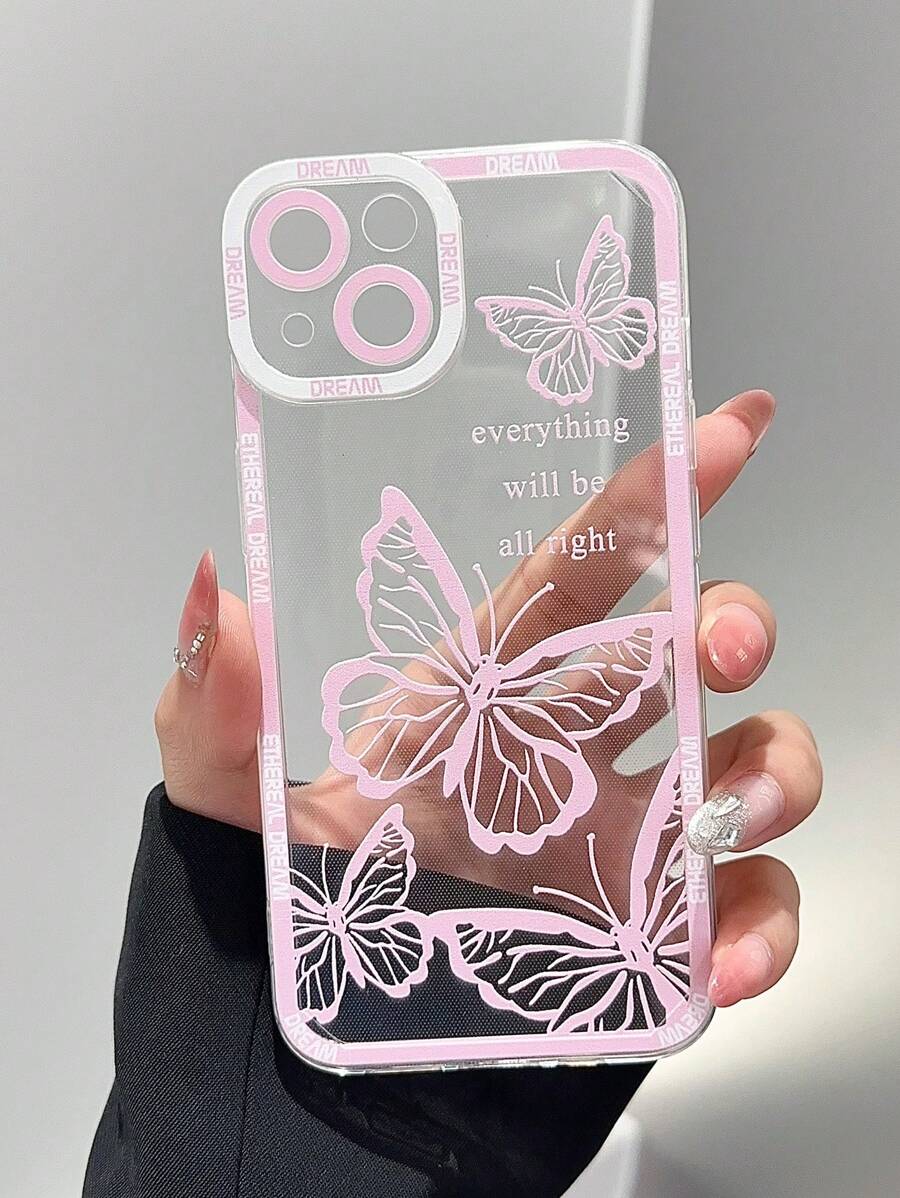 1pc Pink Butterfly Pattern Personalized Border Transparent Phone Case Suitable Compatible With Iphone