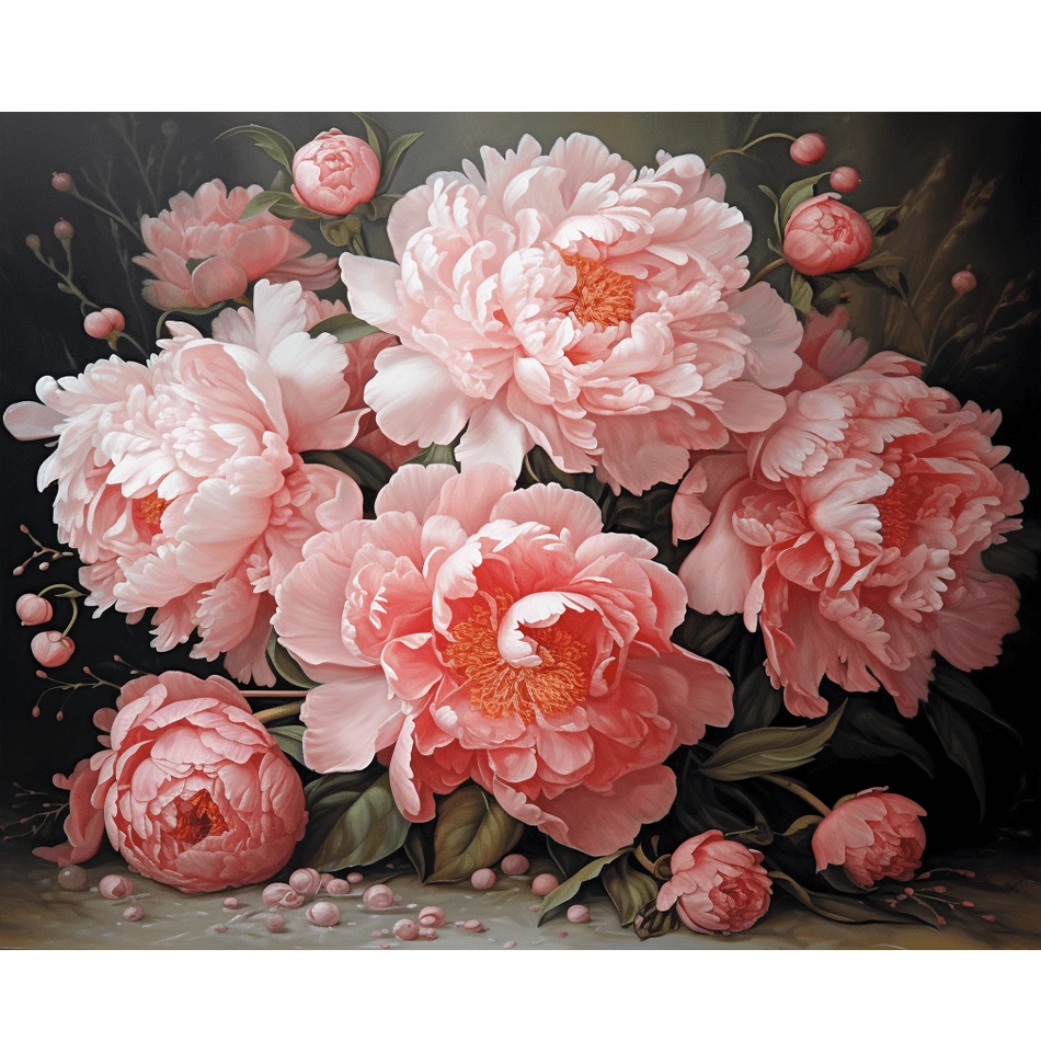 1pc Pink Flowers Painting By Numbers For Adults Kits Diy Crafts Marker By Numbers For Home Decors Wall Art Picture 40x50cm/16x20inch Without Frame