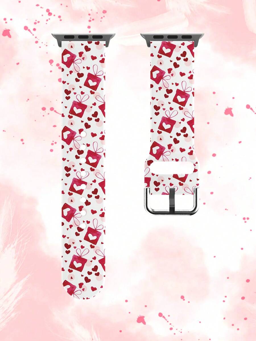 1pc Pink Heart Gift Printed White Tpu Watch Band Suitable For 38/40/41/42/44/45/49mm Apple Watch Ultra/Se/8/7/6/5/4/3/2/1