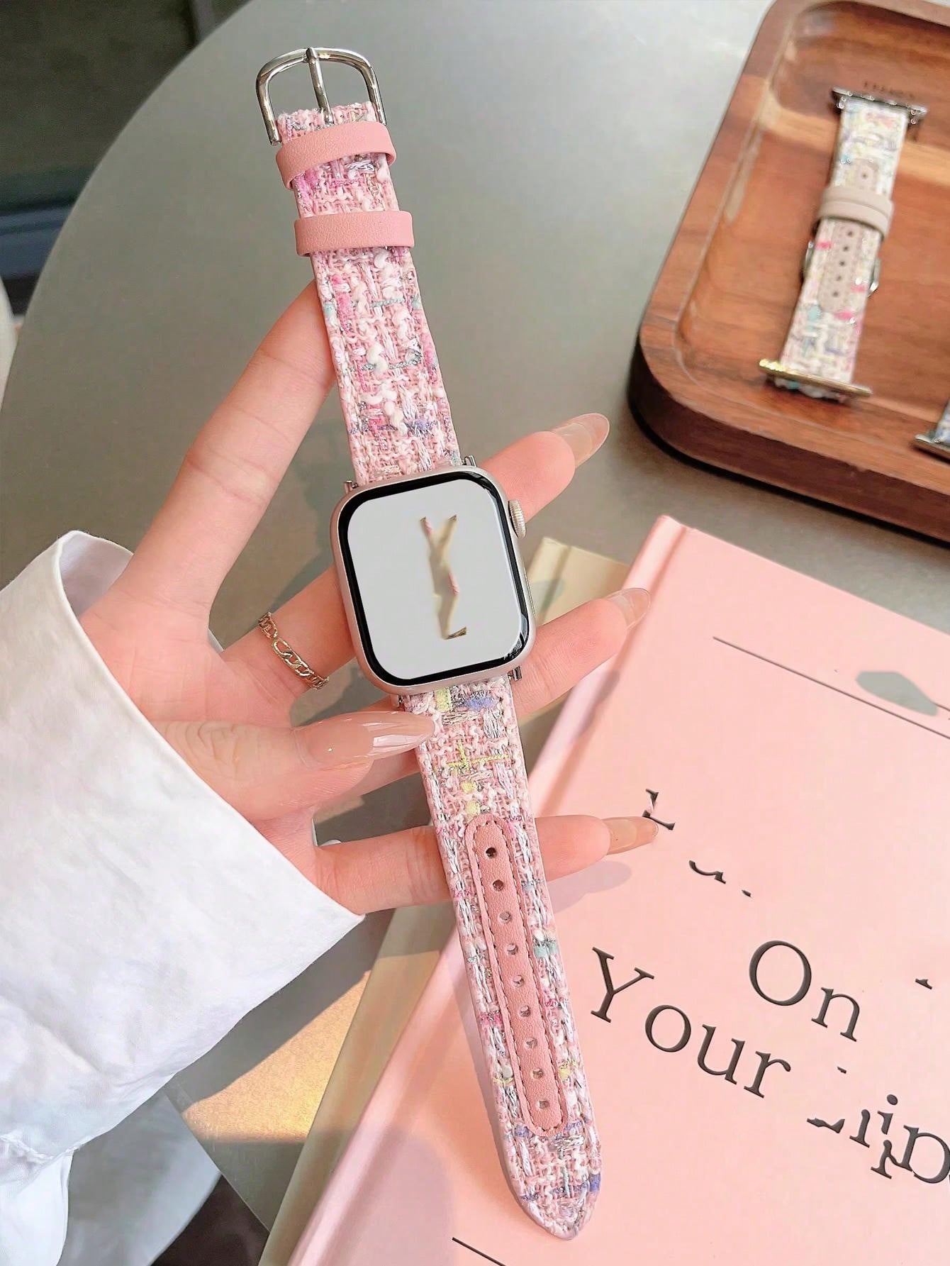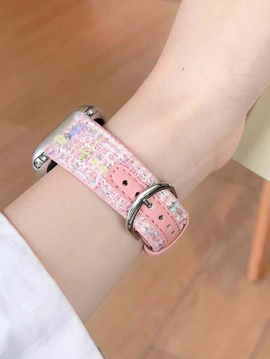 1pc Pink Plaid Winter Christmas Gift Wool Nylon Braided Dopamine Color Wristband Compatible For Apple Watch Series (ultra2/1/se/s9/8/7/6/5/4/3/2/1) Men & Women Replacement Band 38-49mm, Smartwatch Strap