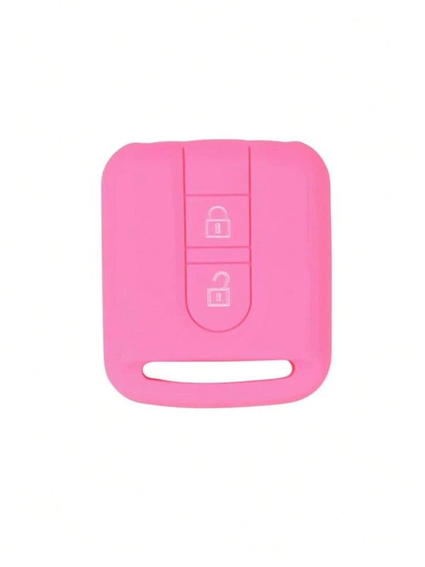 1pc Pink Silicone Car Key Protective Cover, Anti-Fall 2 Button, Suitable For Nissan