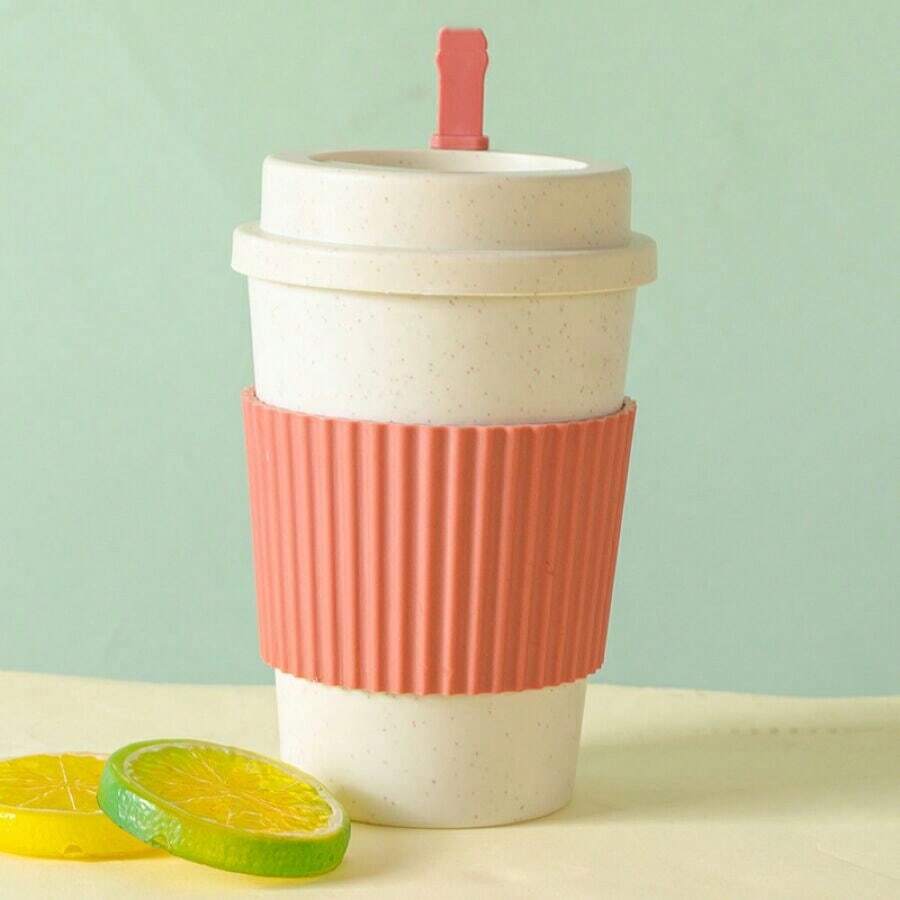 1pc Pink Simple Wheat Straw Coffee Cup With Lid, Portable
