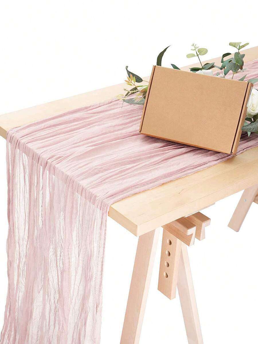 1pc Pink Table Runner, Modern Polyester Pleated Detail Kitchen Table Runner For Daily Life