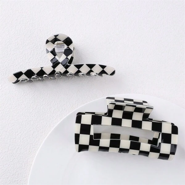 1pc Plaid Hair Clip For Women, Autumn & Winter Geometric Shapes Hair Jaw Clip, Elegant Hair Accessory