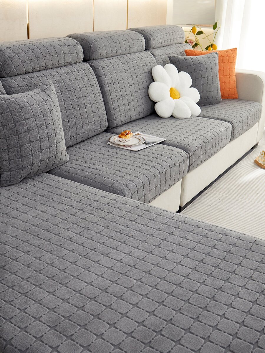 1pc Plaid Jacquard Sofa Seat Cover