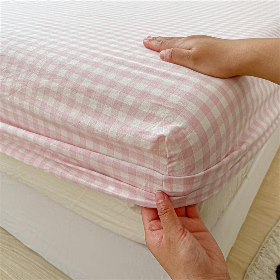 1pc Plaid Pattern Fitted Sheet, Modern Fabric Fitted Bottom Sheet For Bedroom