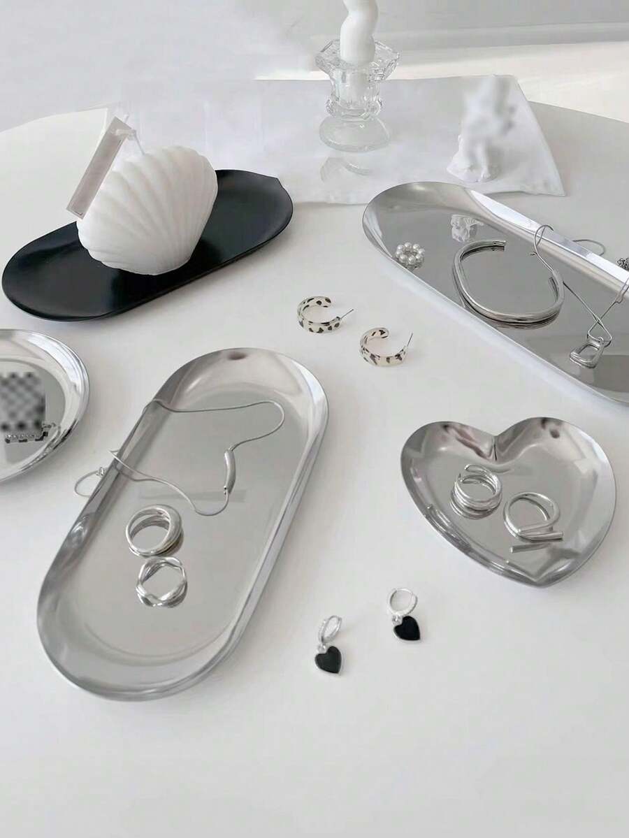 1pc Plain Stainless Steel Jewelry Storage Tray, Gold Oval Jewelry Display Holder For Home, Gift For Valentine's Day