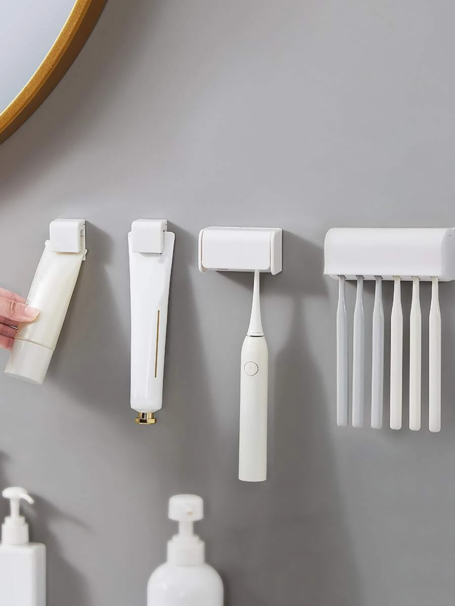 1pc Plain Wall Mounted Multifunction Toothbrush Holder, Toothpaste Rack For Bathroom
