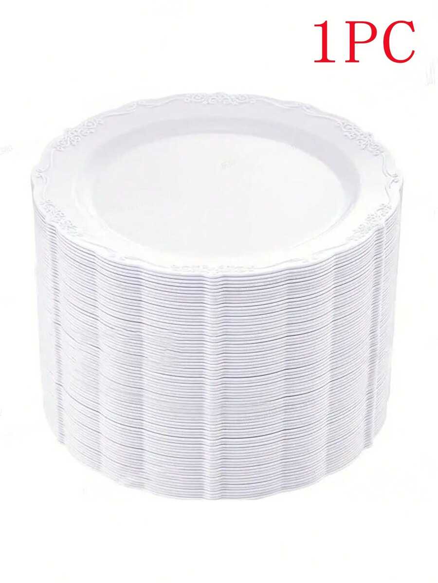 1pc Plastic Lace Edge Dining Plate