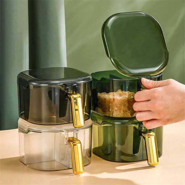 1pc Plastic Seasoning Box With Lid And Spoon For Kitchen Condiment Storage Organizer