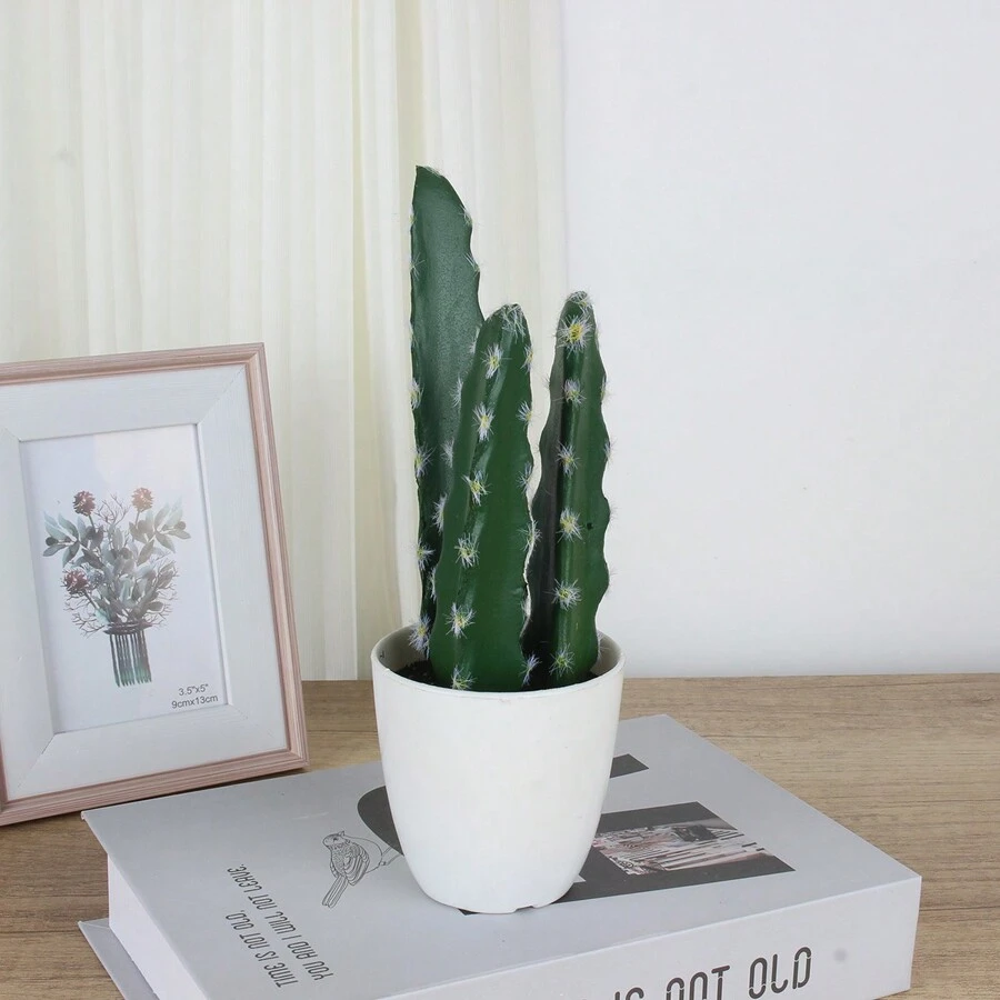 1pc Plastic White Pot Artificial Cactus Plant Pot, Creative Micro Landscape Green Vegetation, Suitable For Home/Office/Hotel/Storefront/Window Display/Photography/Diy Landscape/Decoration