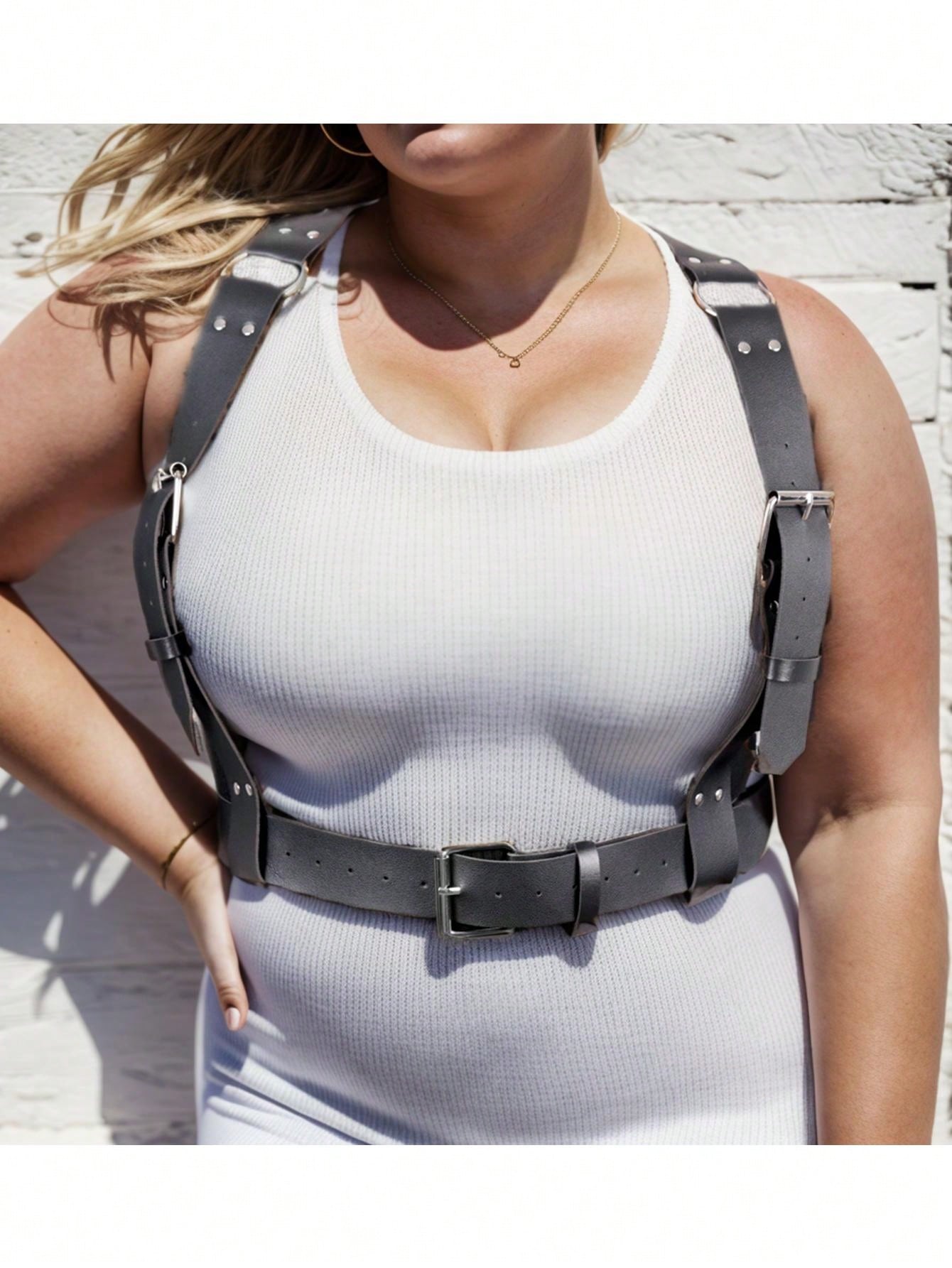 1pc Plus Size Women'S Sexy Bodycon Shapewear With Multi-Layered Faux Leather Shoulder Straps, Adjustable Waistband, Simple Style, Suitable For Daily Wear