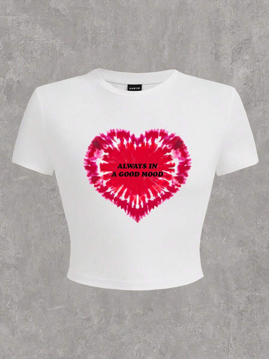 SHEIN Coolane 1pc Plus Size Women Slim Fit Casual T-Shirt With Heart And Letter Print For Valentine's Day