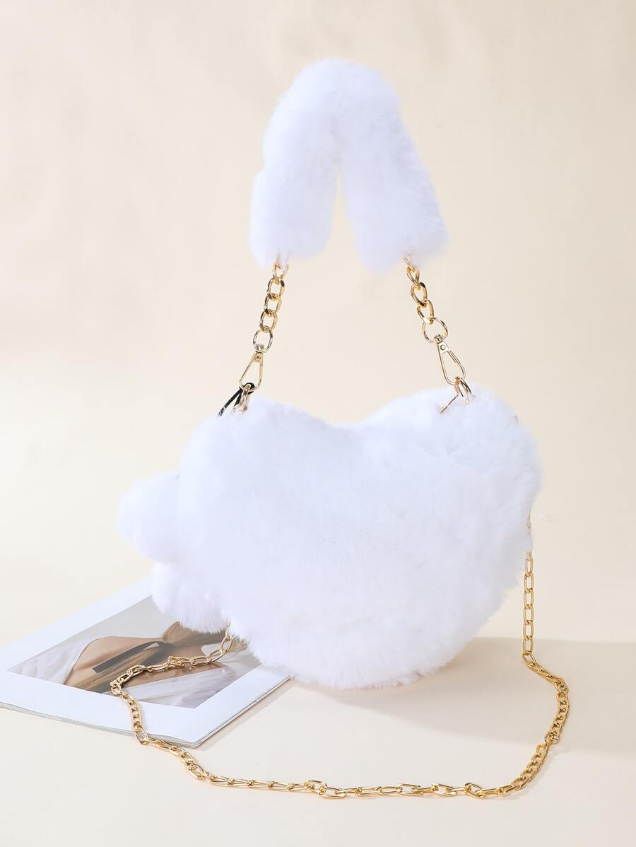 1pc Plush Asymmetrical Shoulder Bag For Ladies, Suitable For Holding Cash And Cosmetics During Outdoor Activities, Can Be Carried By Hand As A Heart-shaped Plush Shoulder Bag With Chain Strap