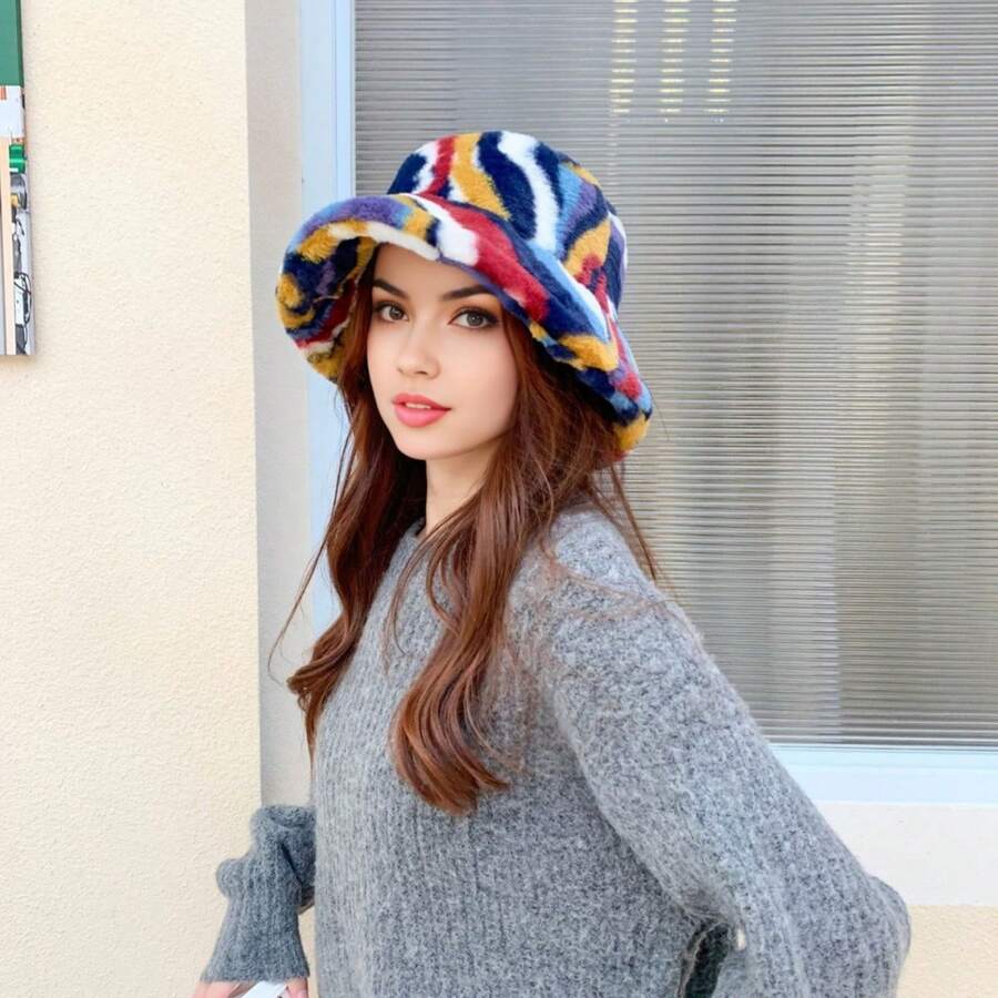 1pc Plush Color Matching Imitation Rabbit Fur Bucket Hat For Autumn And Winter