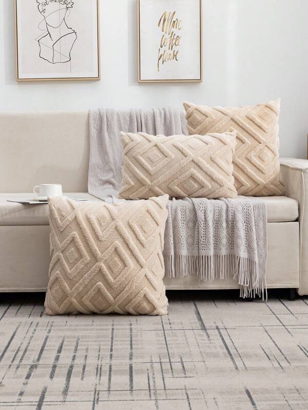 1pc Plush Geometric Pattern Pillowcase (Pillow Core Not Included) Bohemian Style For Living Room, Bedroom, Home Decoration, Universal Pillowcase For All Seasons