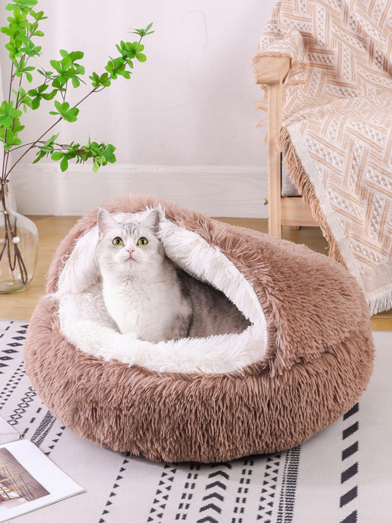 1pc Plush Semi-Enclosed Pet Bed With Blanket For Winter, Suitable For Large, Medium And Small Cats And Dogs