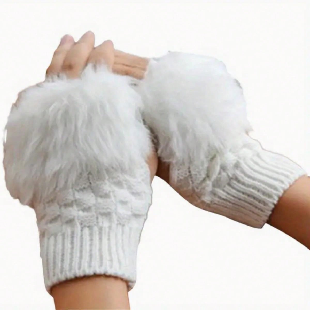 1pc Plush Warm Ribbed Knitted Gloves Elegant Solid Color Fingerless Gloves Coldproof Knit Gloves For Women