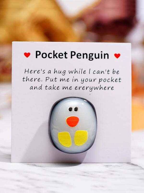 1pc Pocket Penguin Hug Animal Greeting Card, Mini Penguin Decoration Encouragement Card, For Birthday, Party, Wedding