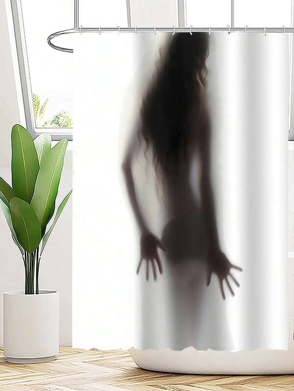 1pc Polyester Bathroom Shower Curtains With Girl'S Silhouette And Water-Resistant And Anti-Mildew Functions