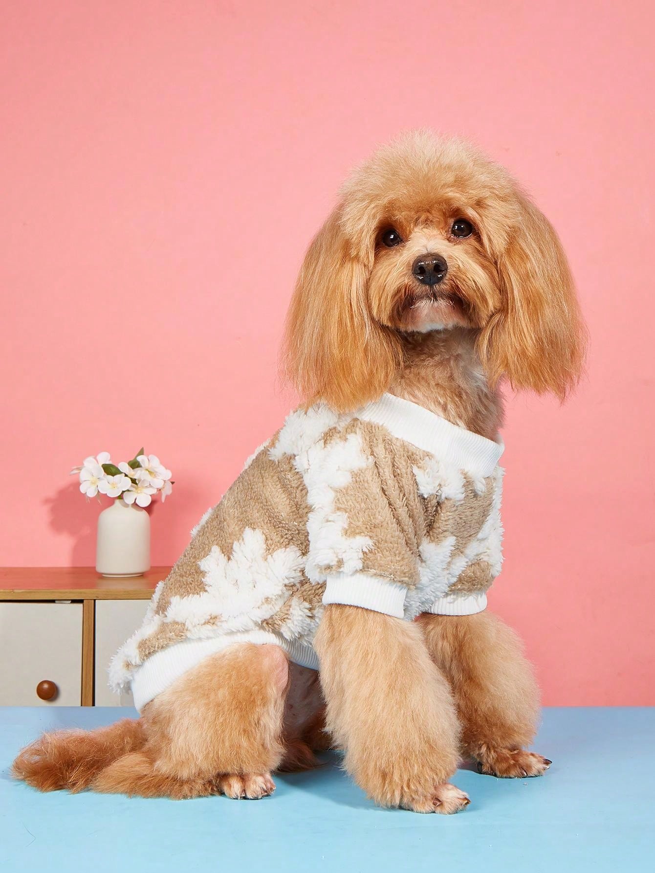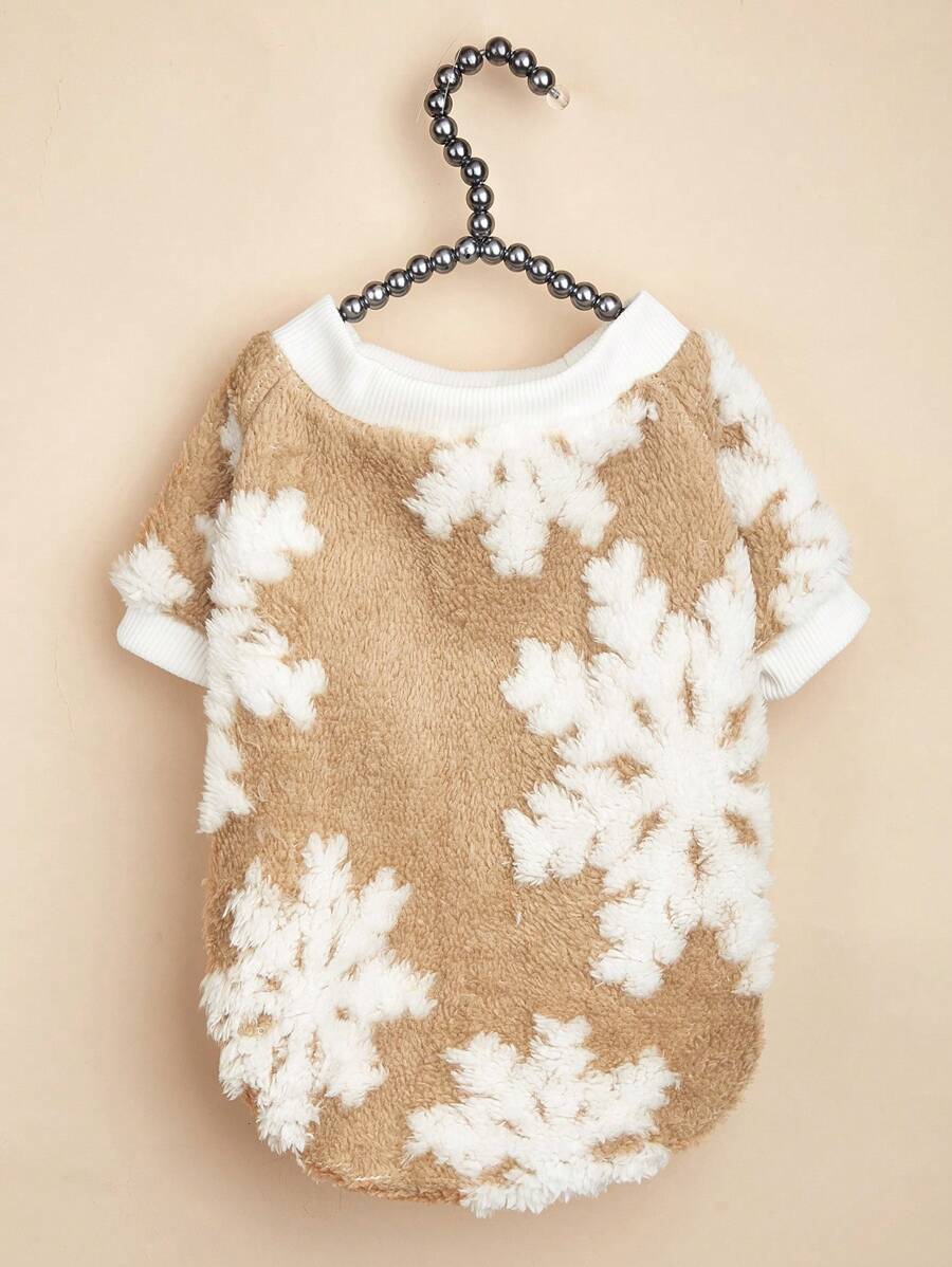 1pc Polyester Plush Christmas Element Snowflake Pattern Pet Sweater For Both Cats And Dogs, Autumn And Winter