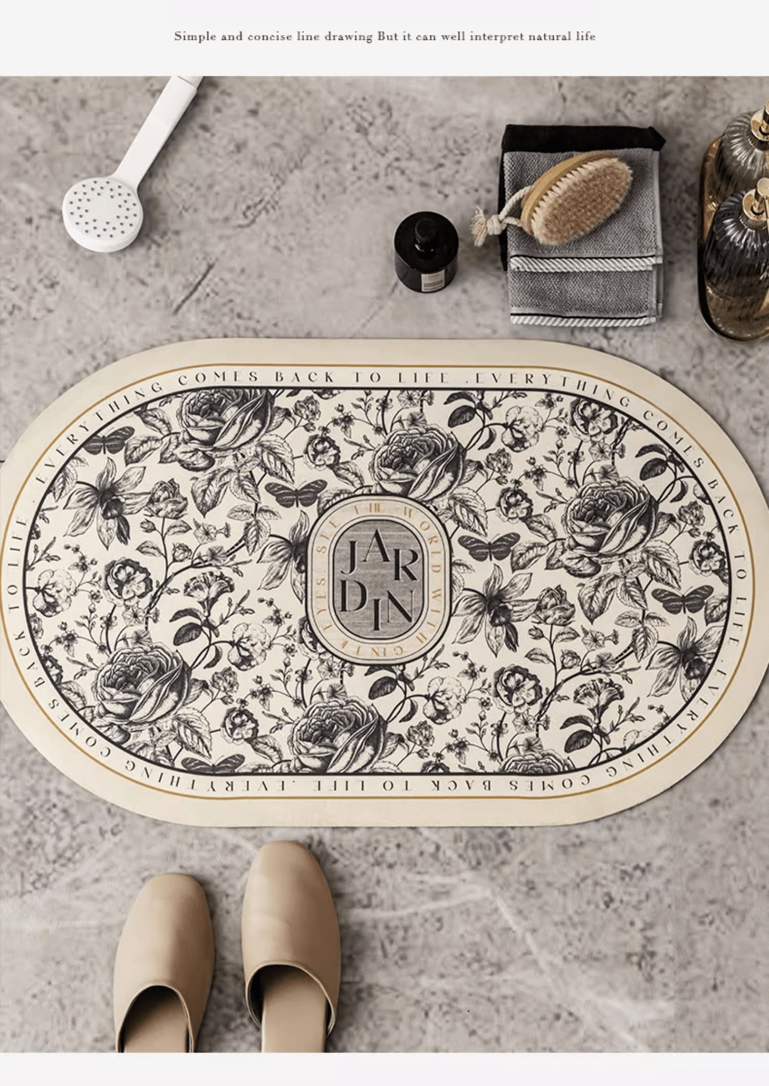 1pc Polyester Retro Flowers Bathroom Mat, Water Absorbent Rubber Anti-slip Foot Pad