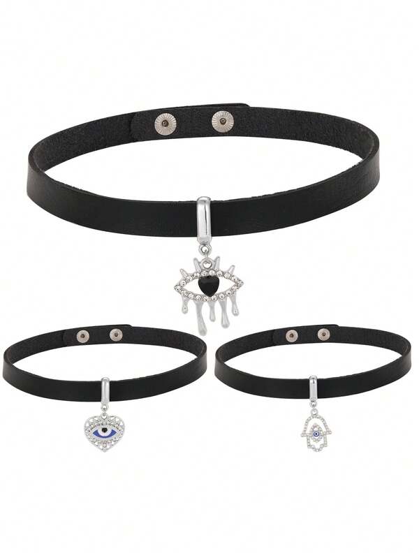 1pc Punk Style Alloy & Rhinestone Decor Devil Eye Pattern Pu Leather Collarbone Necklace For Women'S Daily Wear