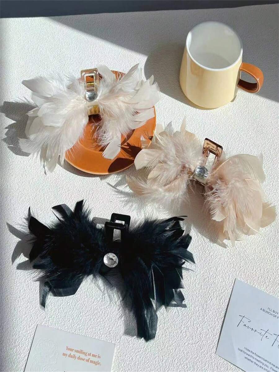 1pc Pure And Elegant Feather Large Hair Grip, Claw Clip For Women, New In Autumn And Winter, High Capacity, Fashionable Hair Accessory For Valentine'S Day, Easter And New Year Party, Dates And Gatherings