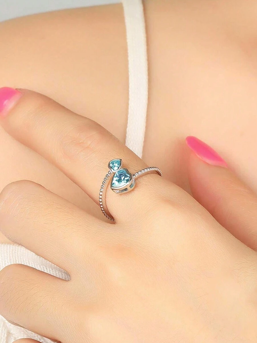 1pc Pure S925 Silver Deep Purple Double Heart Cut February Birthstone Adjustable Opening Ring, Romantic Gift For Girlfriend, Girls, Valentine'S Day, Birthday, Jewelry Accessories