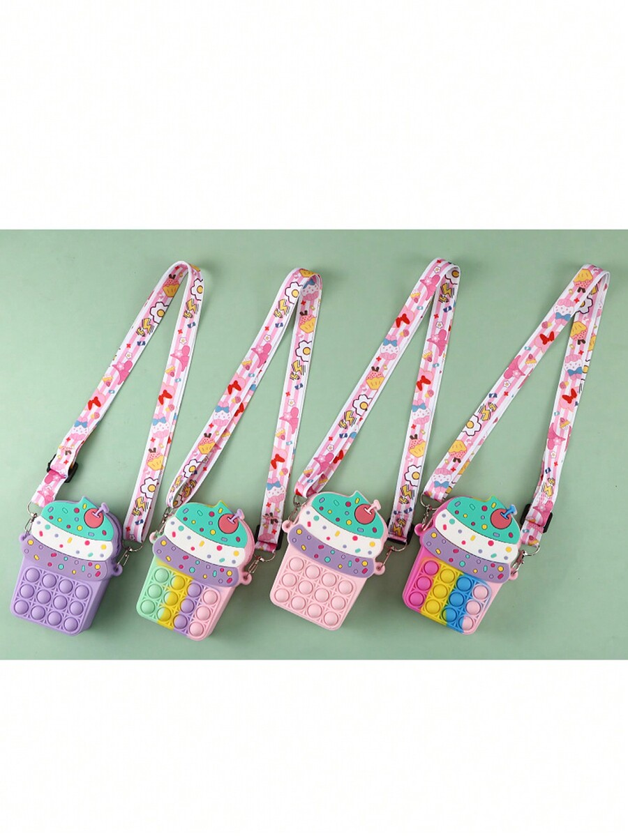 1pc Purple Children's Crossbody Bag, Cartoon Ice Cream Shaped, Bubble Wrap Design, Soft Durable Silicone Material, Lovely Kids' Shoulder Bag & Coin Purse