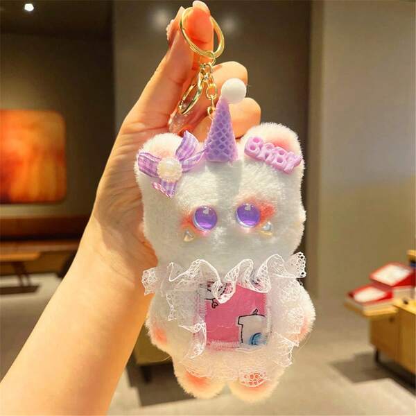 1pc Purple Cute Lolita Bear Doll Plush Toy Wholesale Schoolbag Pendant Mini Doll Doll Pendant Key Chain, Cute Lady Bag Pendant, Beautiful Lovely Holiday Gift